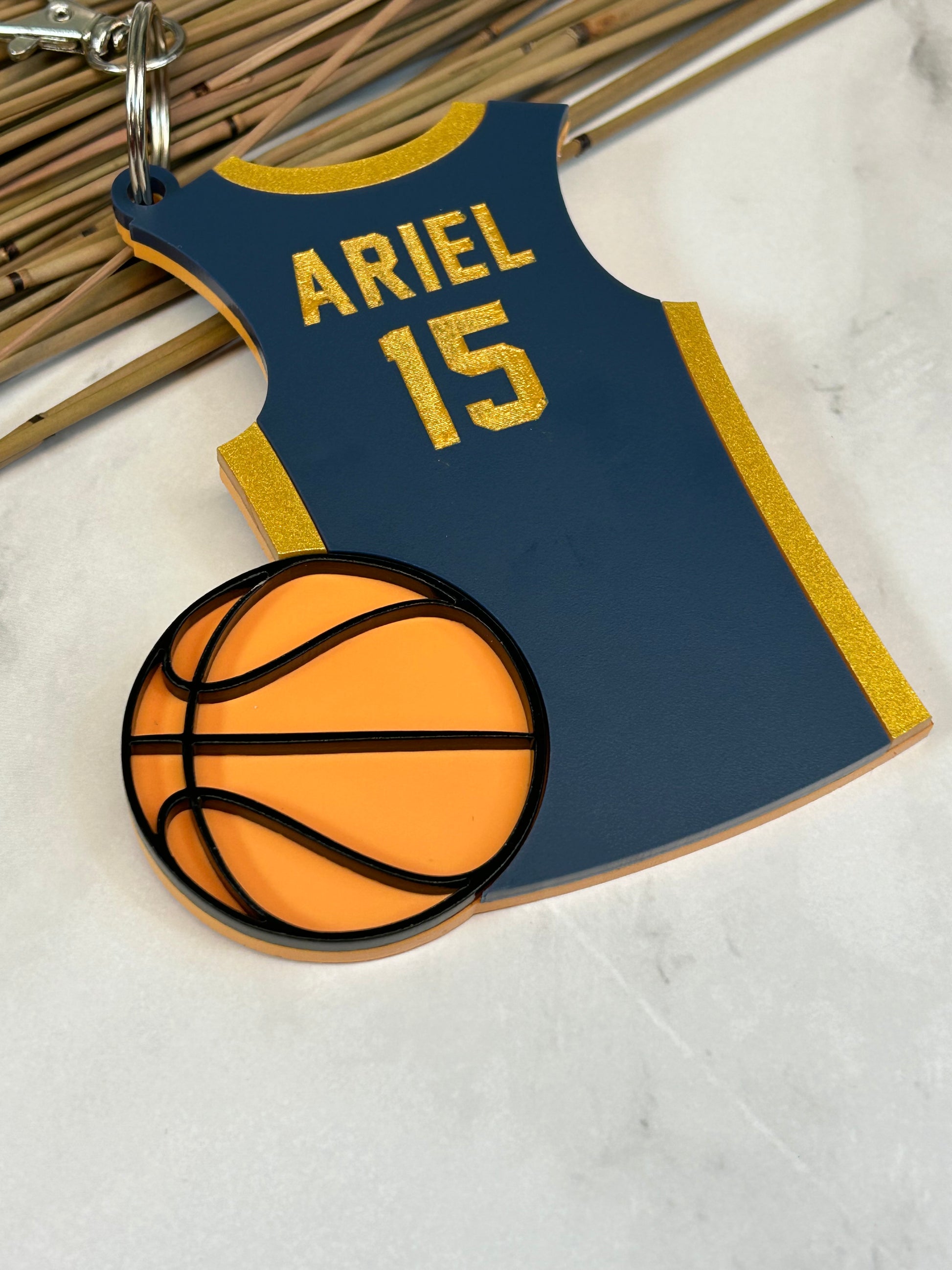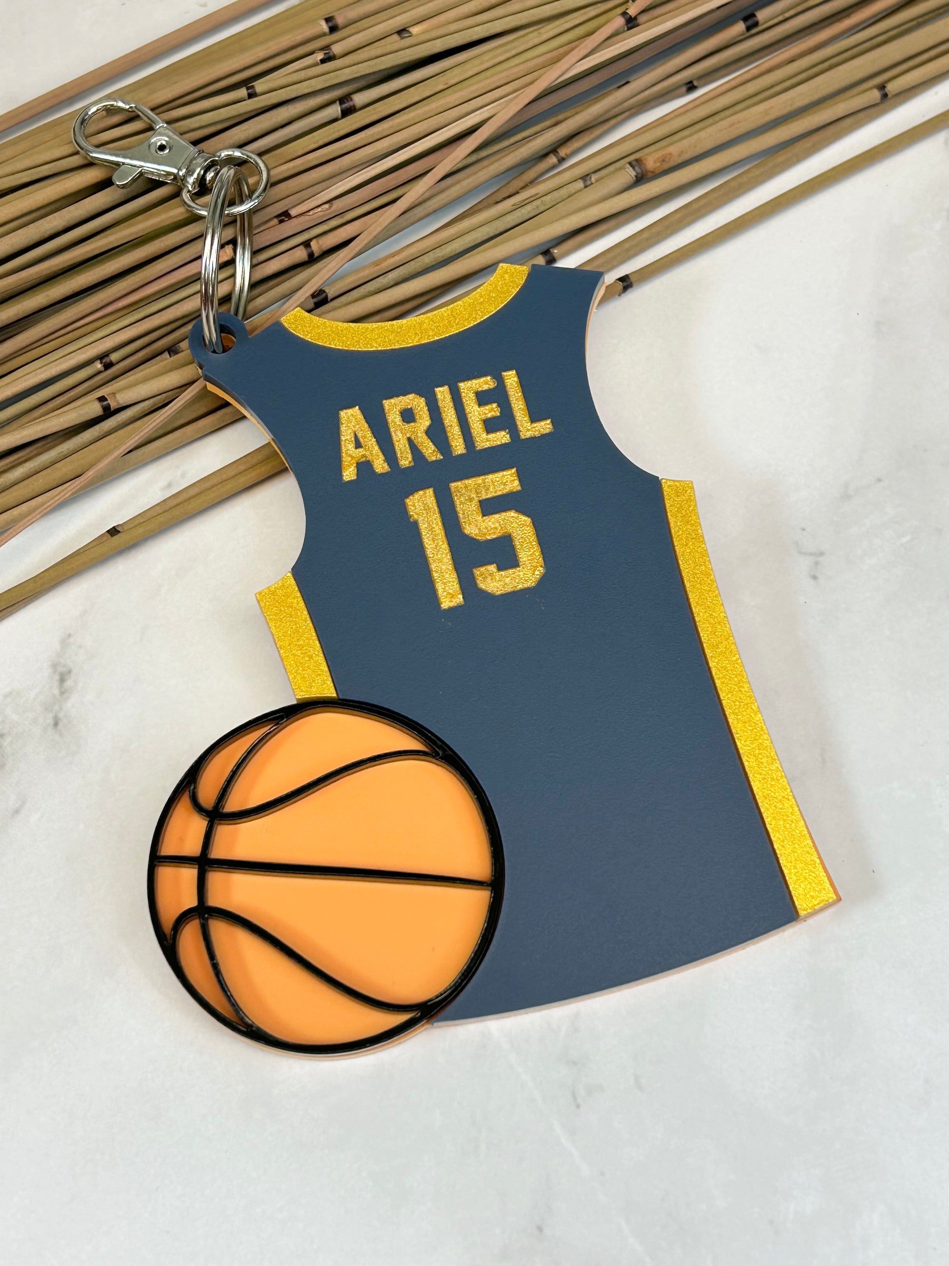 Basketball Jersey with Ball Backpack Clip On Name Tag