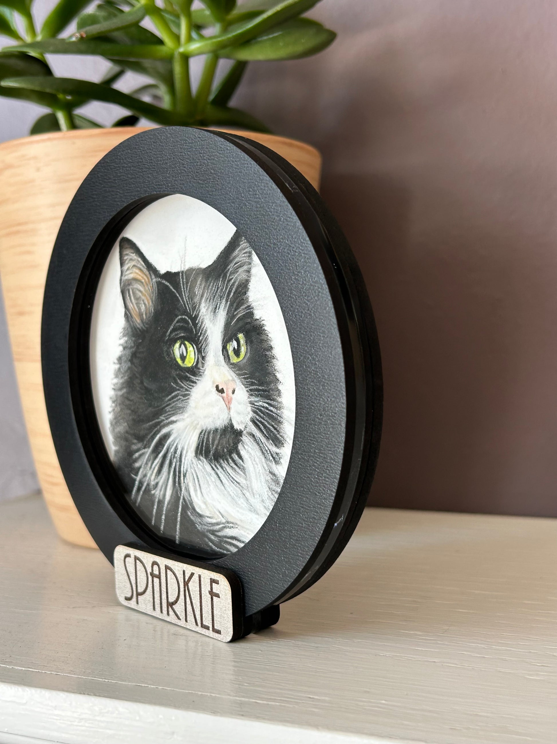 With different frame options these portraits can be shelf sitters or you can choose to have a magnet or sawtooth hanger option on the back. So many ways to display them!