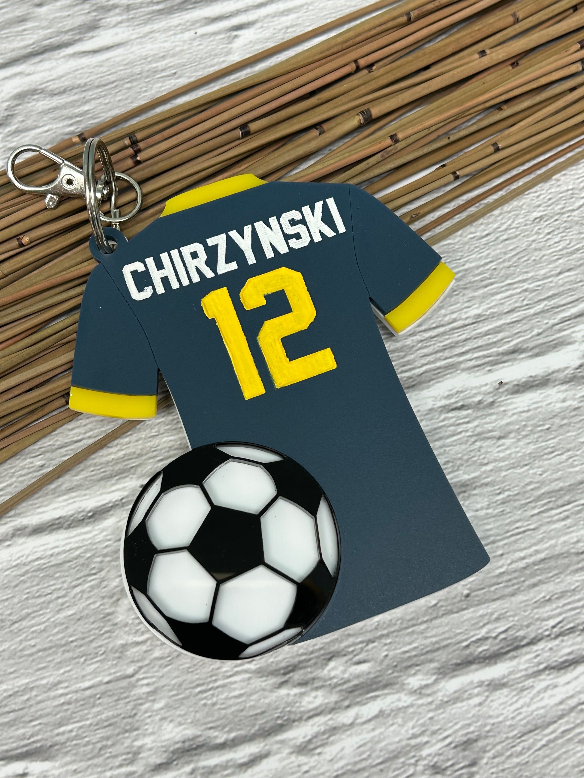 Soccer Jersey with Ball Backpack Clip On Name Tag